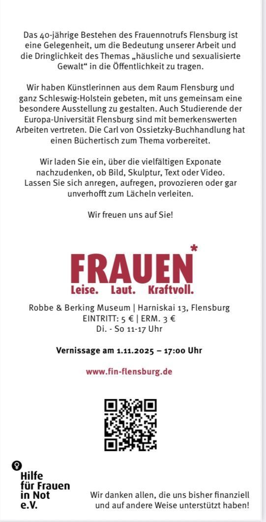 Vernissage am 1.11.2025 um 17.00 Uhr bei Robbe und Berking in Flensburg.